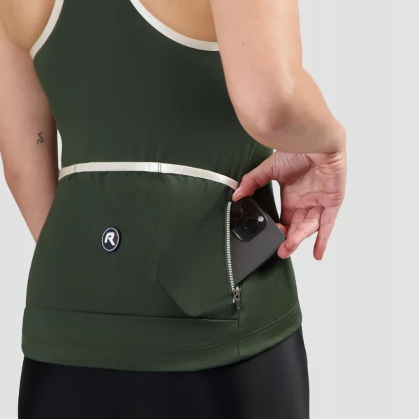 Bestsellerowy top rowerowy Race Fit bez rękawów, stworzony na najgorętsze dni (25–40℃). Materiał Dynaflex jest elastyczny i oddychający, optymalnie odprowadza pot. Posiada długi, autoblokujący zamek Vislon i silikonowy ściągacz w pasie, który zapobiega przesuwaniu. Wyposażony w cztery kieszenie z tyłu.
