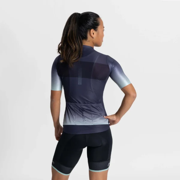 Koszulka Race Fit z efektem ombre, zaprojektowana na ciepłe dni (15–35℃). Rękawy z aerodynamicznego materiału Sitip® Cyber Rider 2.0 są bezszwowe. Panele boczne i tylne Sitip® Leader Mesh zapewniają optymalną wentylację. Posiada silikonowy pasek na dole i trzy tylne kieszenie.