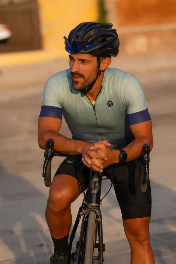 Koszulka Race Fit, produkowana w Europie, z abstrakcyjnym pikselowym nadrukiem. Korpus z materiału ATX, wstawki boczne z elastycznej siateczki Sitip® Bodyfit. Posiada zamek na całej długości, trzy tylne kieszenie + kieszeń na ukryty zamek oraz silikonowy pasek w dole.