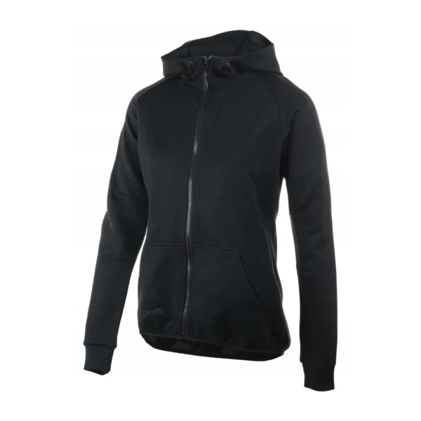 Wygodna damska bluza sportowa o dopasowanym kroju, odpowiednia do noszenia przez cały rok. Wykonana z elastycznego i oddychającego materiału, z delikatnym ociepleniem wewnątrz. Wyposażona w zamek na całej długości, wysoki kołnierz oraz dwie oddzielne przednie kieszenie typu kangur do bezpiecznego przechowywania rzeczy osobistych.